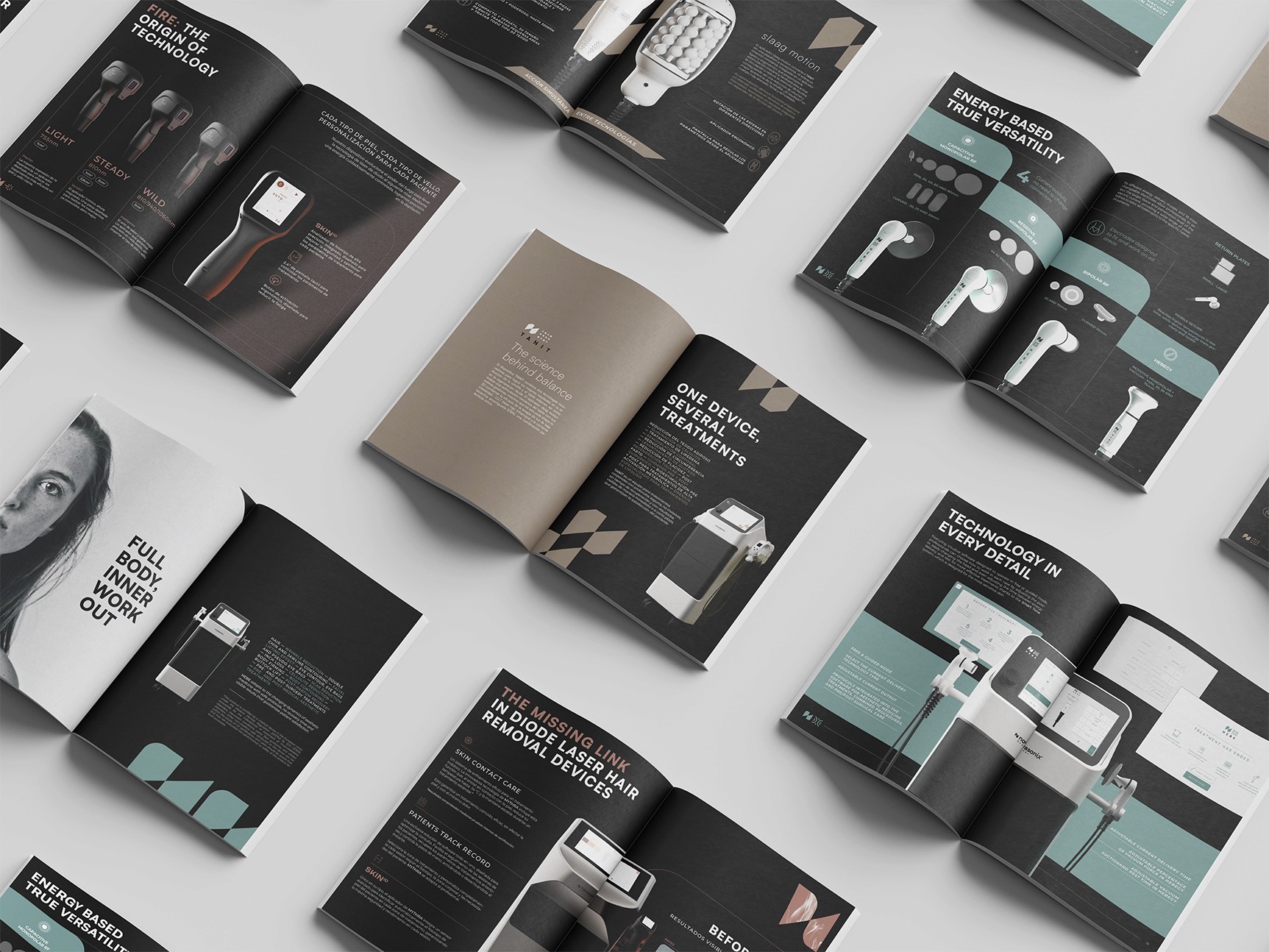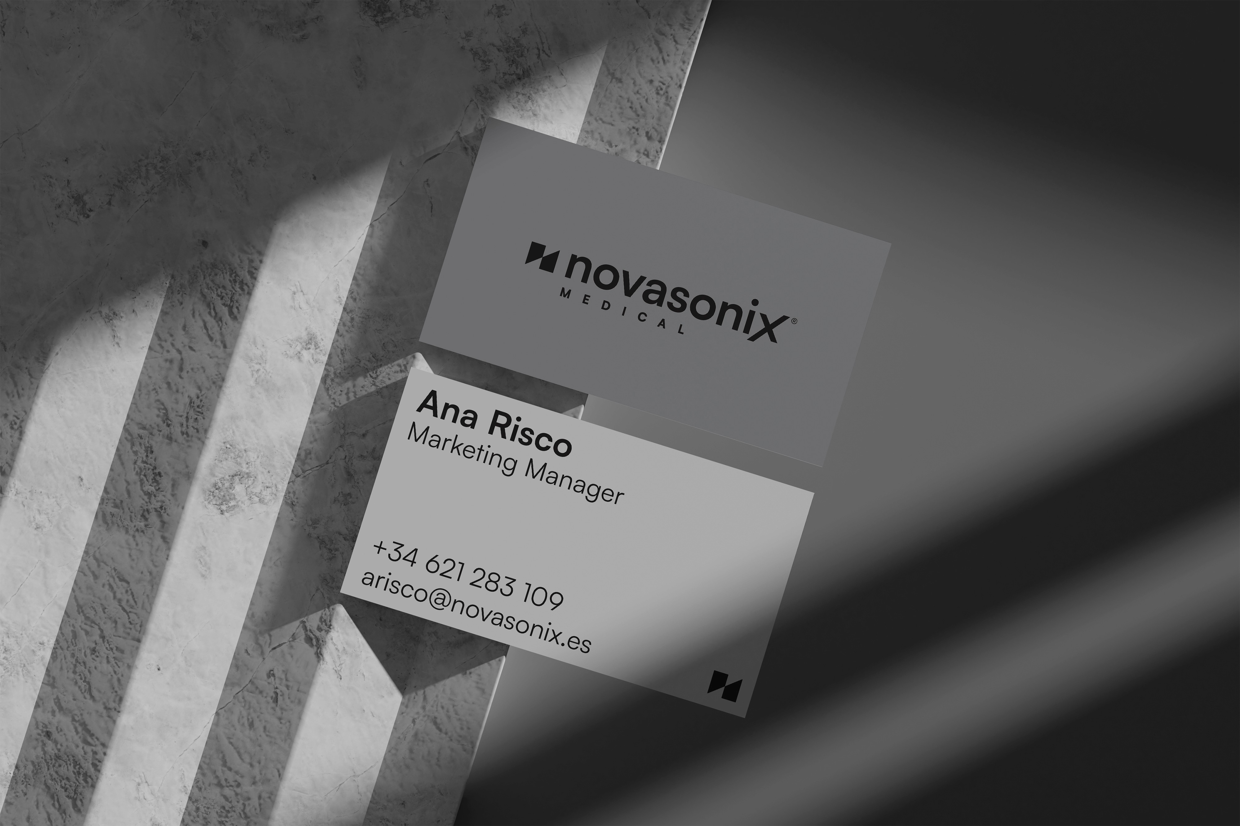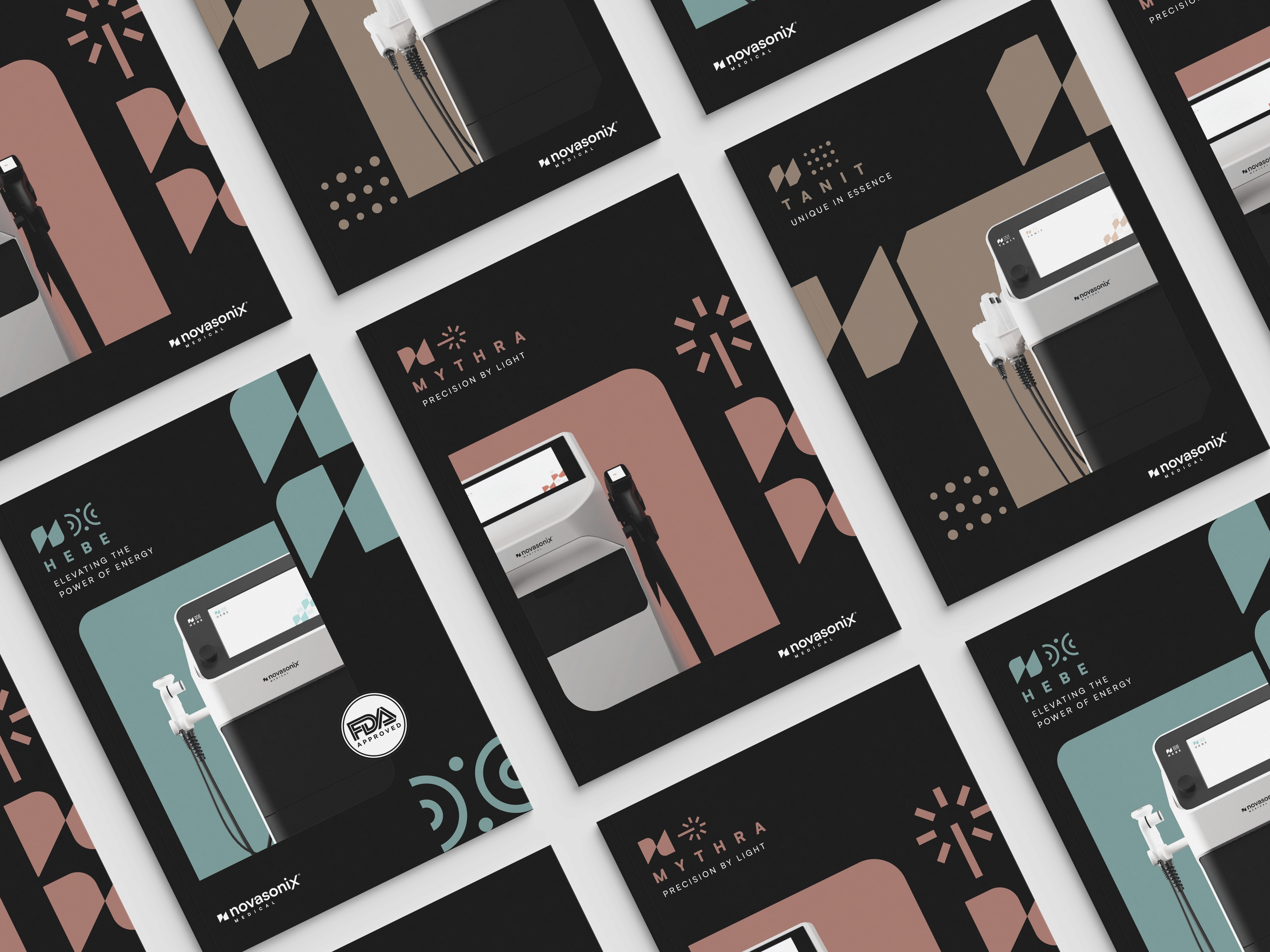 Novasonix Medical is a professional aesthetic medicine equipment brand under Novasonix Group, developing cutting-edge technology for clinical and medical aesthetics teams. The brief called for a full visual identity capable of conveying the precision, innovation, and authority that the brand stands for — while connecting with something deeper and more universal. The concept at the core of the project is the relationship between technology and nature: the four elements — earth, water, fire, and air — exist in constant tension and movement, and it is through Novasonix's innovation that they are brought into harmony and order. This idea became the foundation of an entire visual world, where scientific rigor and natural forces speak the same language. The result is a visual identity that feels both clinical and elemental, precise and powerful — built to position Novasonix Medical as a reference in the professional aesthetic medicine space.